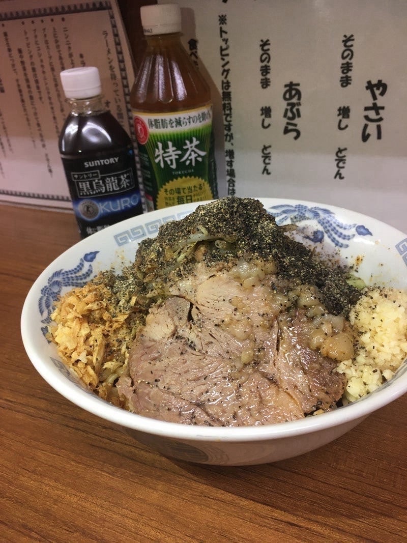 店長特製ダレで煮込んだ豚バラと玉ねぎをのせて